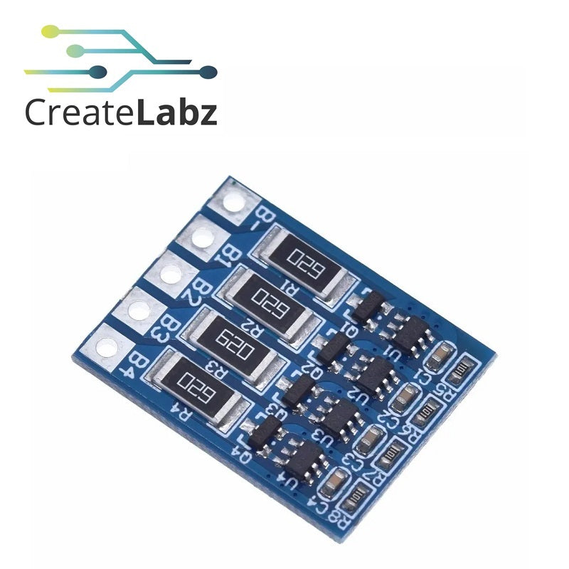 The 4 Series 14.8V 18650 Lithium Battery Equalization Board is designed for lithium battery packs that require equalization charging and cell balancing. It ensures that each cell in the battery pack reaches a fully charged state at the same time, improving overall performance and battery life. Please note that this equalization board does not provide charge or discharge protection and cannot replace a battery protection board (BMS). During charging, cells with higher voltage are discharged through resistors, allowing lower-voltage cells to continue charging. This process enables voltage balancing through split equalization, ensuring uniform cell voltage across the battery pack.